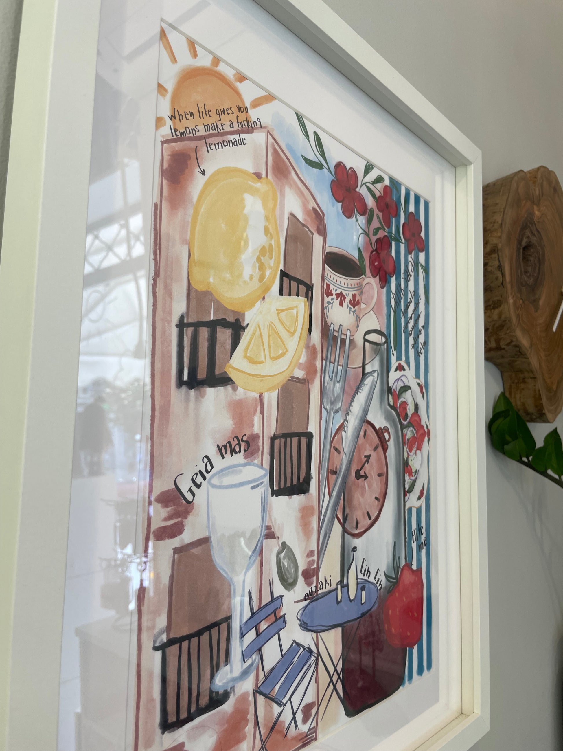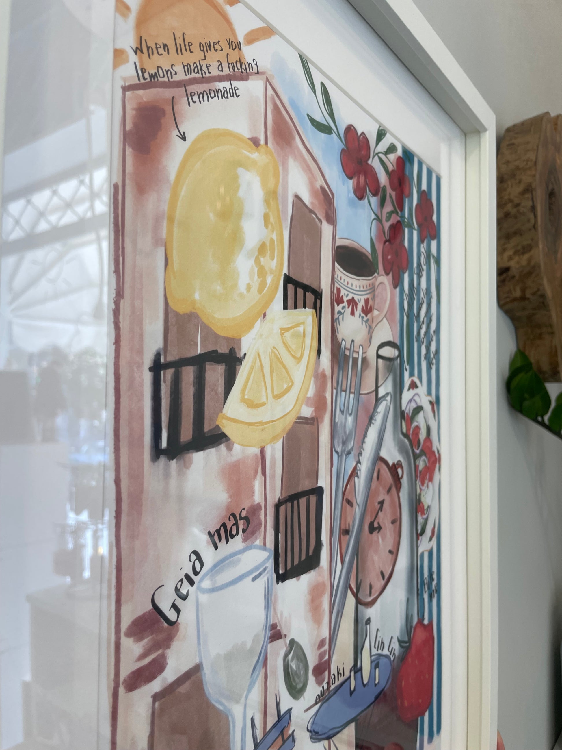 Τύπωμα σε ειδικό χαρτί με υφή διαστάσεων Α3 (30*40εκ), κορνιζαρισμένο σε μαύρη κορνίζα διαστάσεων (40*50εκ)