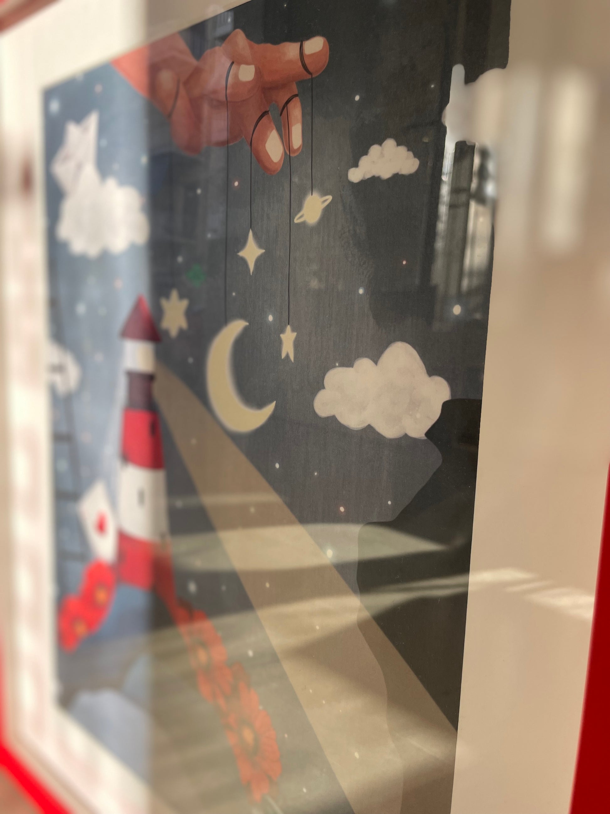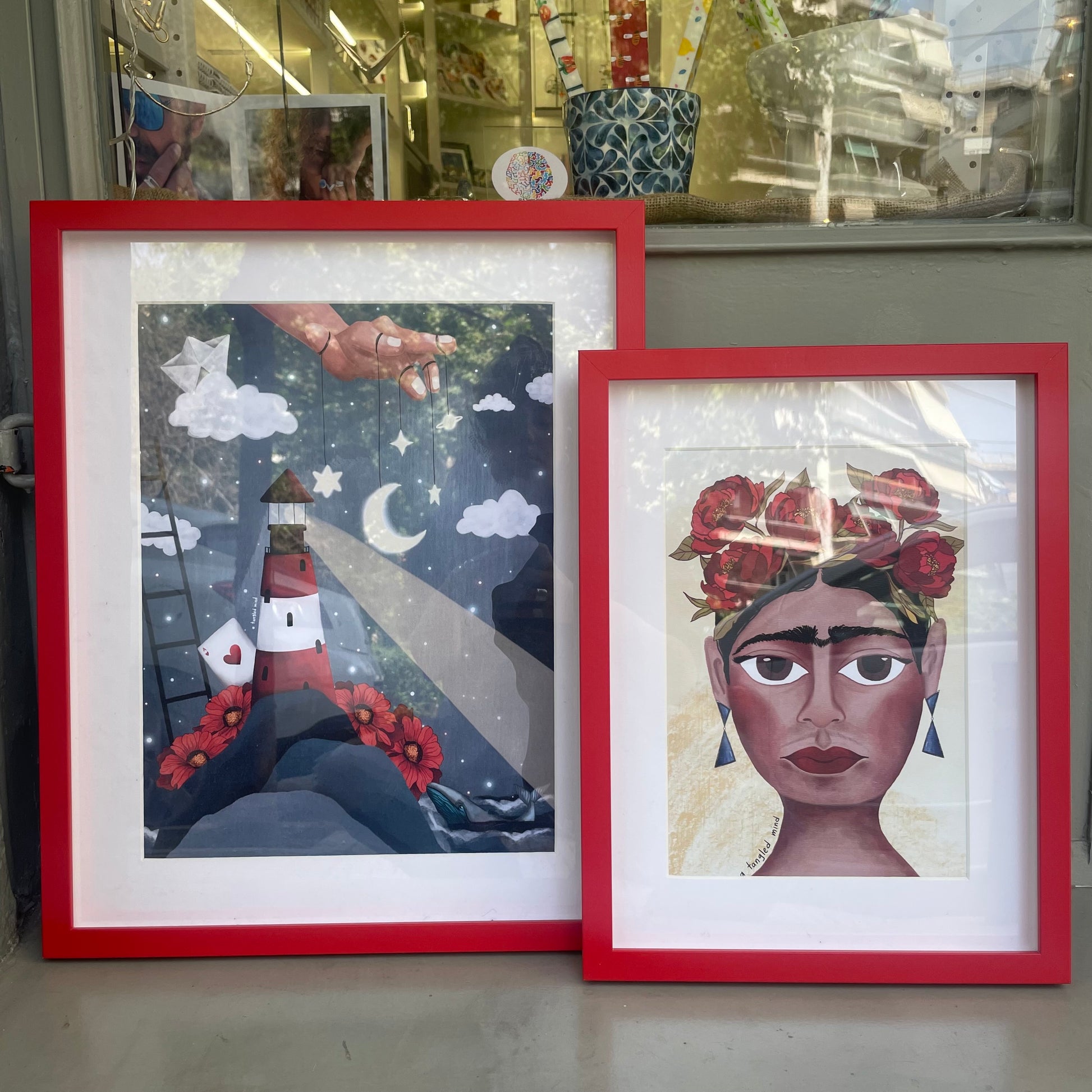 Τύπωμα σε ειδικό χαρτί διαστάσεων Α3 (3040εκ), σε κόκκινη κορνίζα διαστάσεων 40*50εκ