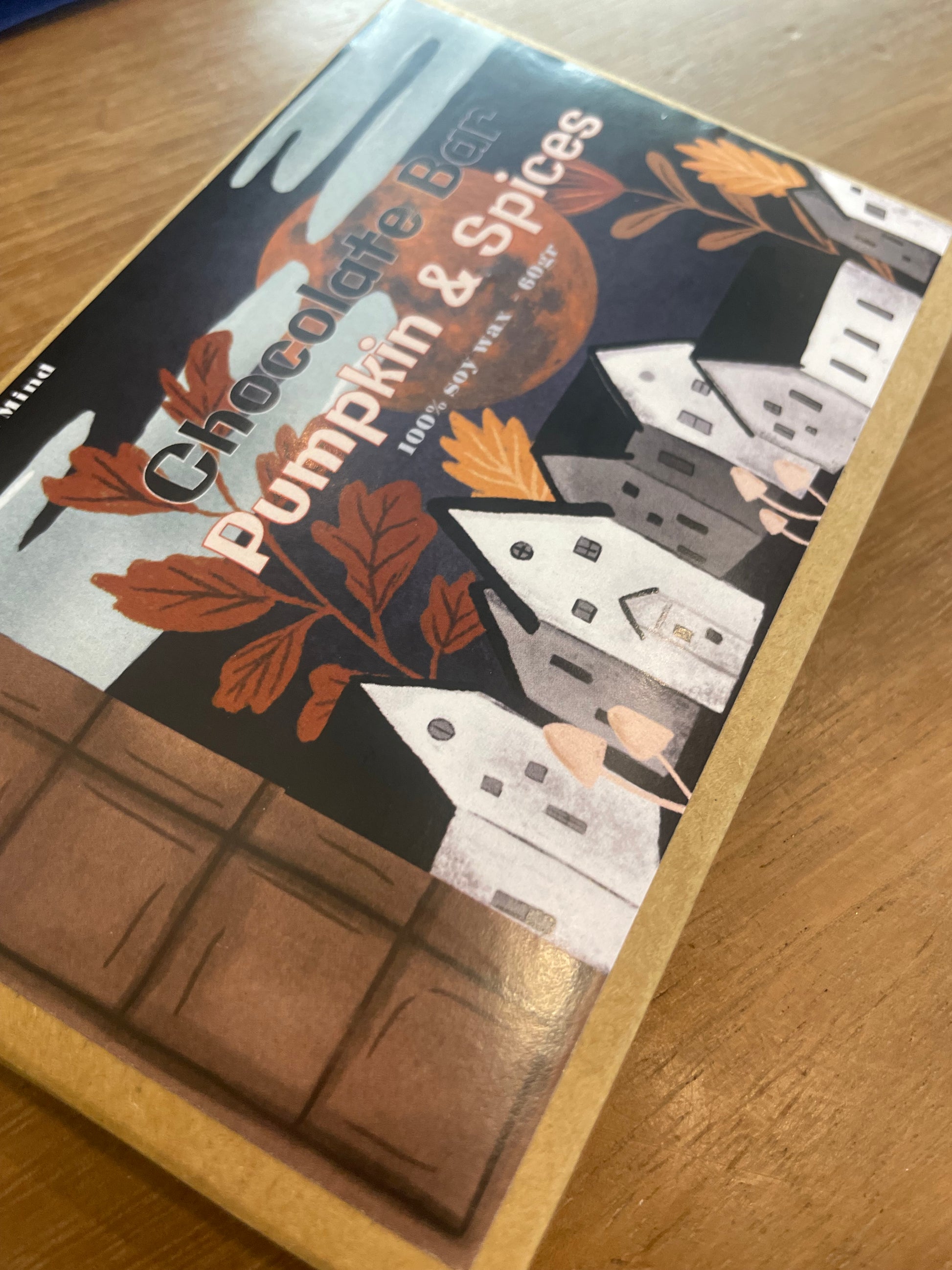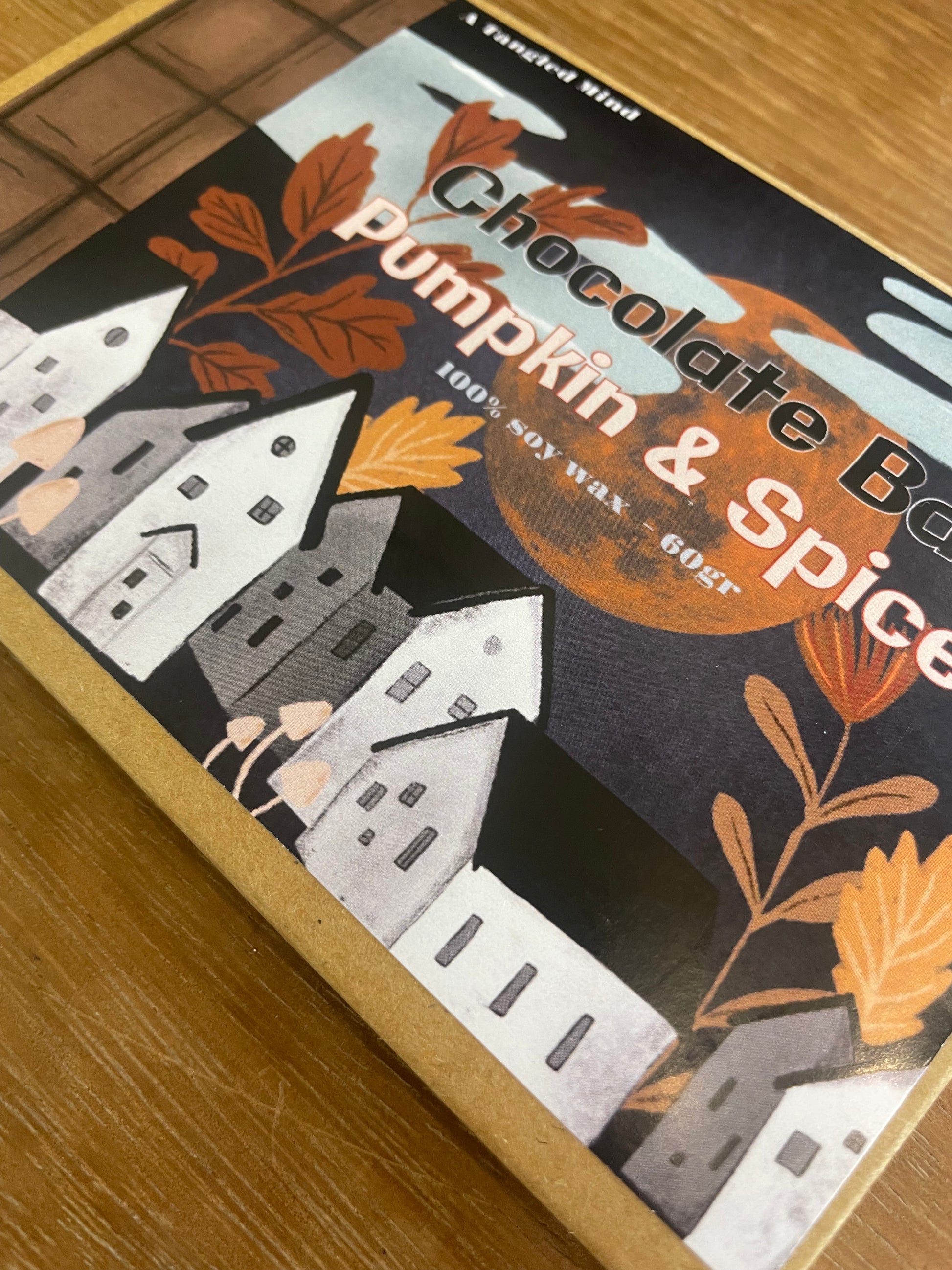 Melts από σκληρό κερί σόγιας ~60-70γρ, σε οικολογικό κραφτ κουτί για να θυμίζει σοκολάτα και μετά το τέλος να το ανακυκλώσεις. Κόβεις κομματάκια και τα λιώνεις σε καυστήρα έως ότου σταματήσει να μυρίζει ή εξατμιστεί.